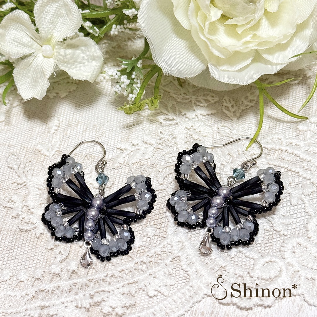 竹ビーズで作る蝶々が繊細で華やかなモチーフです。