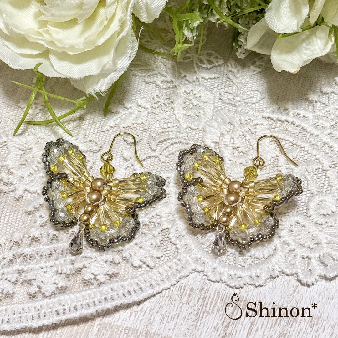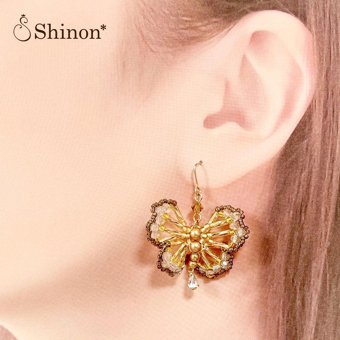 竹ビーズで作る蝶々が繊細で華やかなモチーフです。