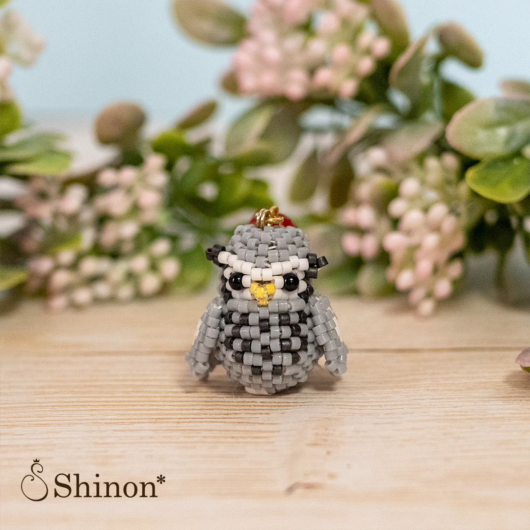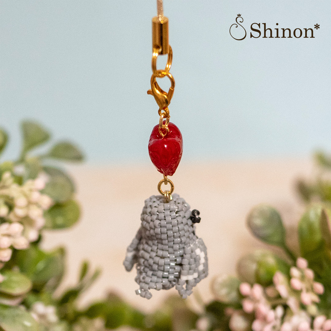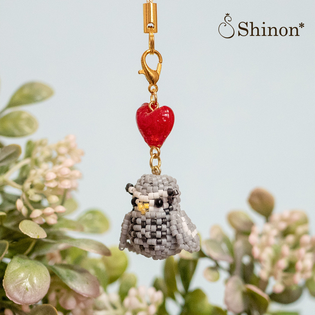使用素材:シードビーズ、ガラスビーズ、ストラップ金具など