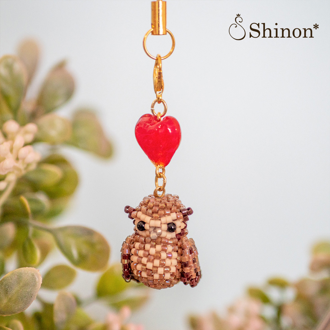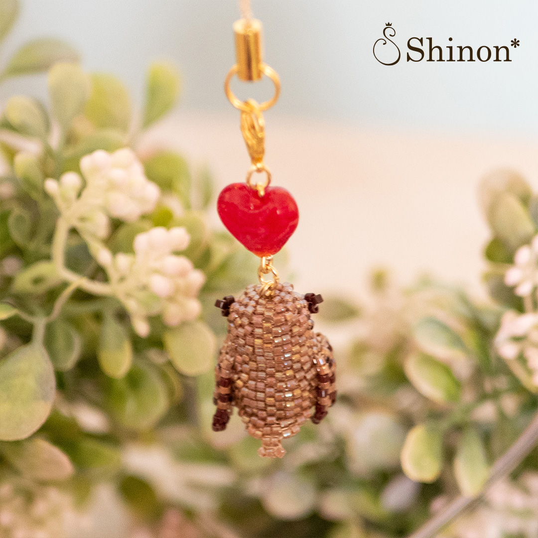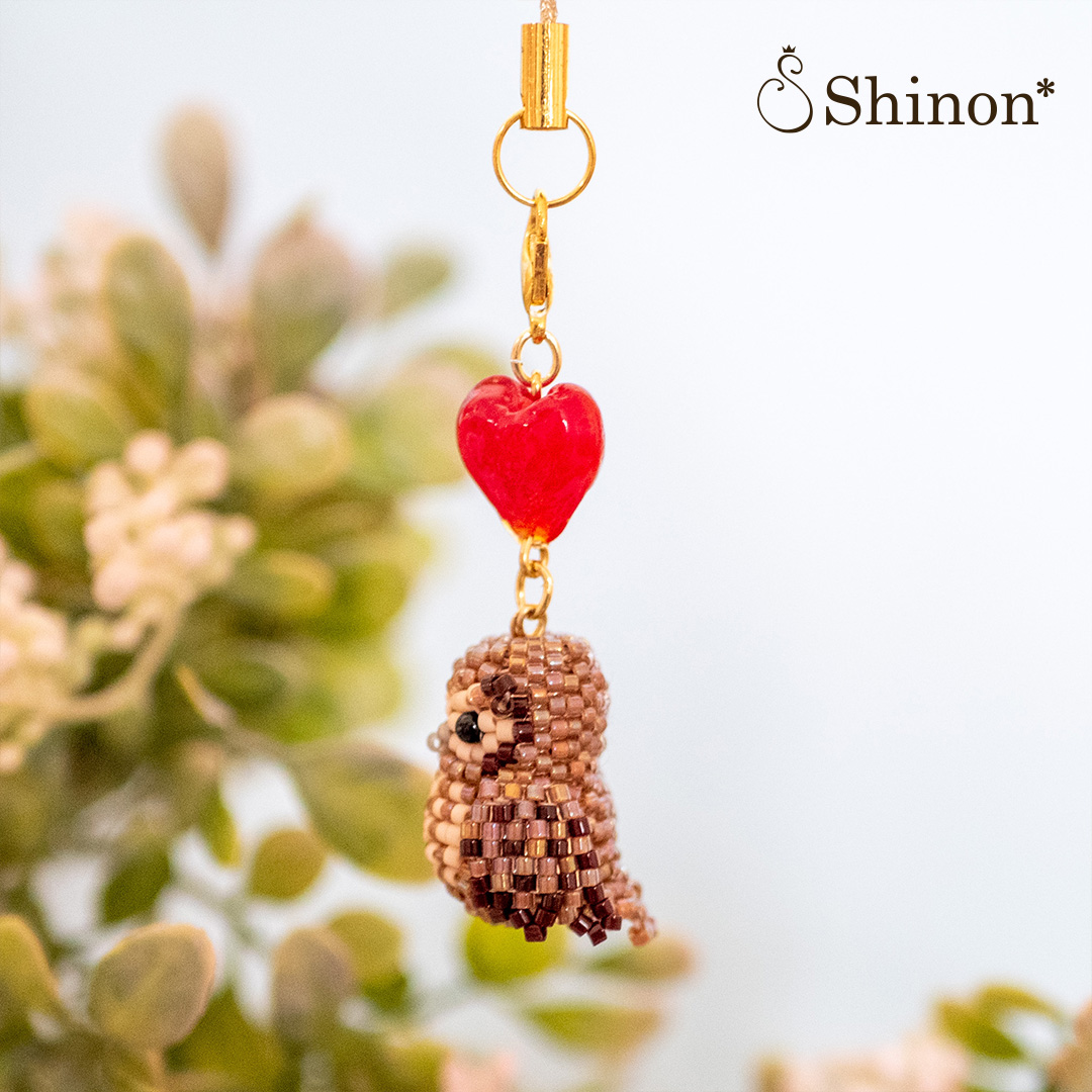 使用素材:シードビーズ、ガラスビーズ、ストラップ金具など